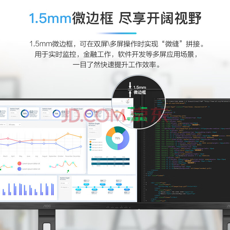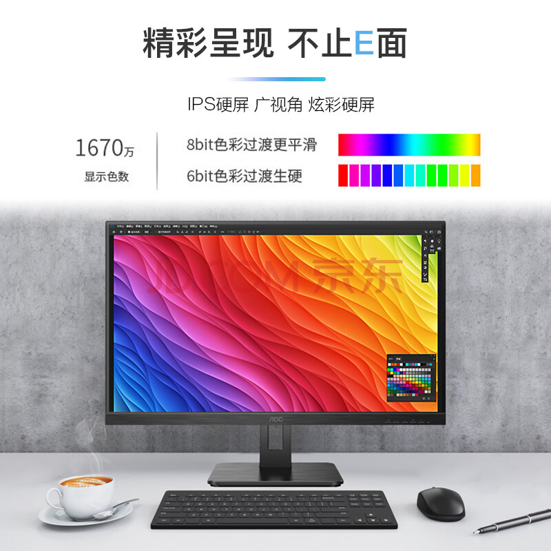 商品相册:AOC显示器 23.8英寸IPS高清TUV低蓝不闪屏光窄边框节能办公电脑显示屏 24E2H第