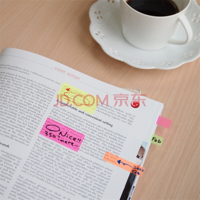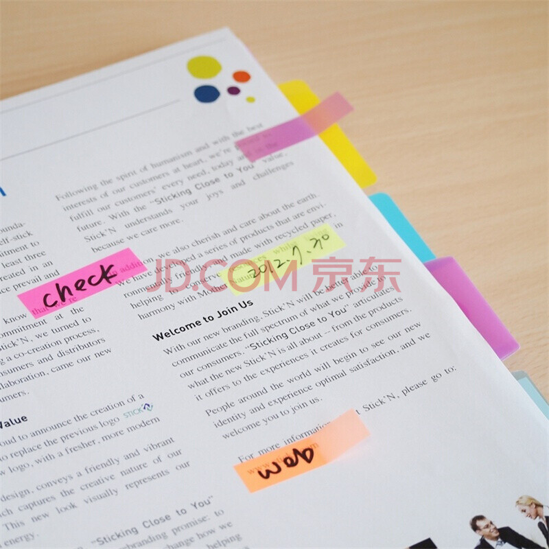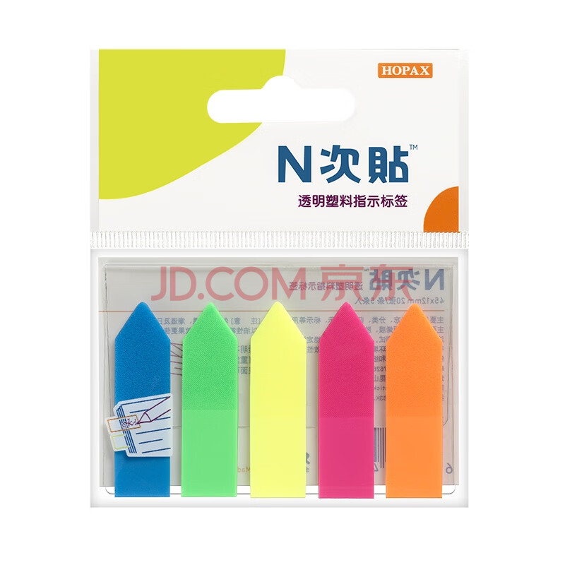 商品相册:N次贴(STICKN) 100张5色荧光膜指示标签贴 42*12mm箭头款分类索引便利贴记事贴34015第