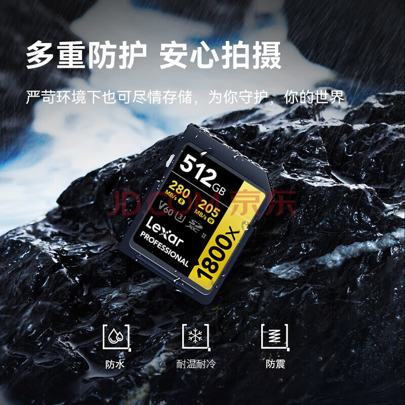 商品相册:雷克沙(Lexar)512GB SD存储卡 C10 U3 V60 数码相机高速内存卡 读280MB/s 写205MB/s 4K畅拍(1800x)第