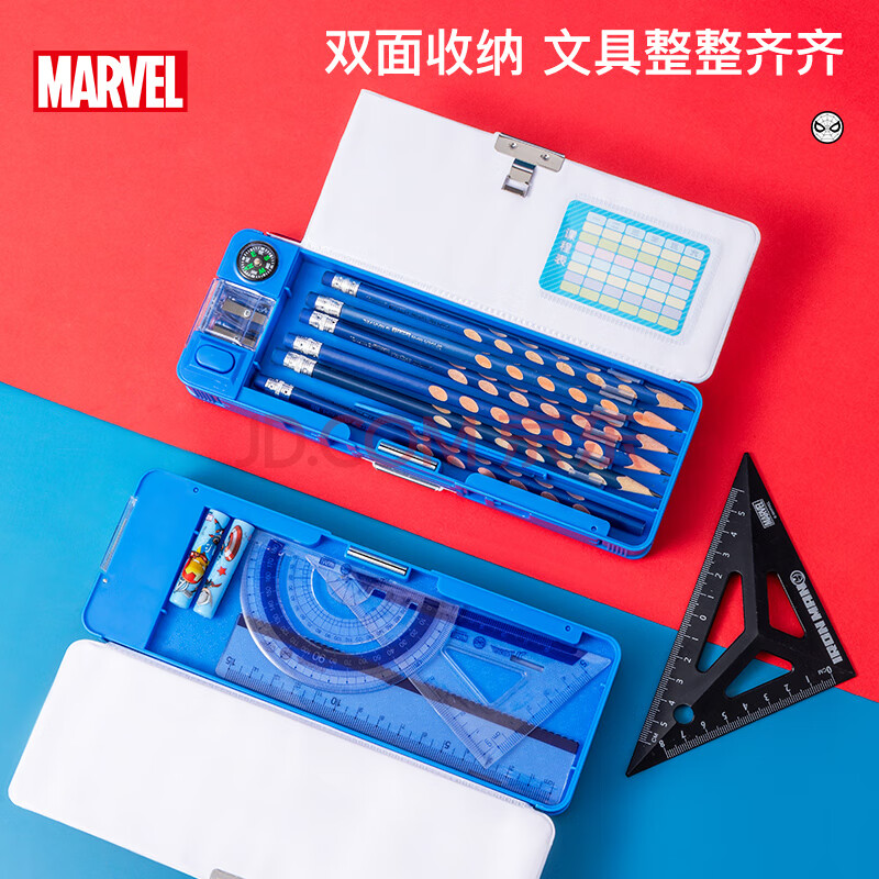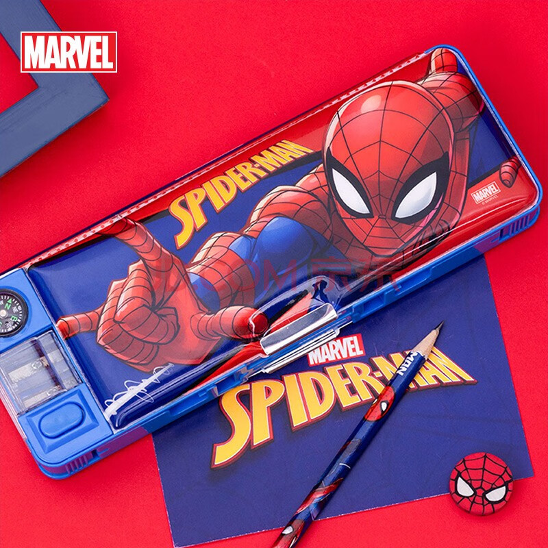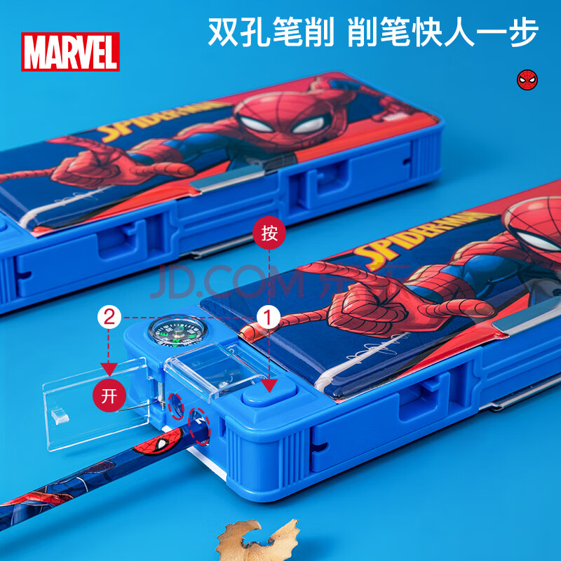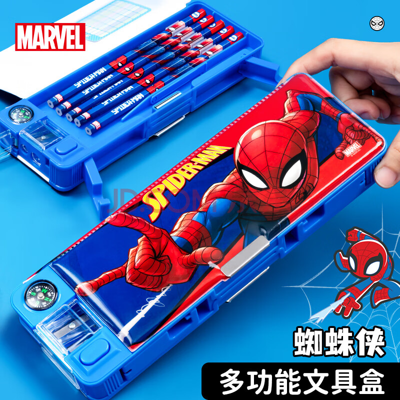 商品相册:迪士尼(Disney)小学生文具盒 多功能塑料笔盒带笔削指南针 儿童生日礼物双面大容量铅笔盒 蜘蛛侠E29229A1第