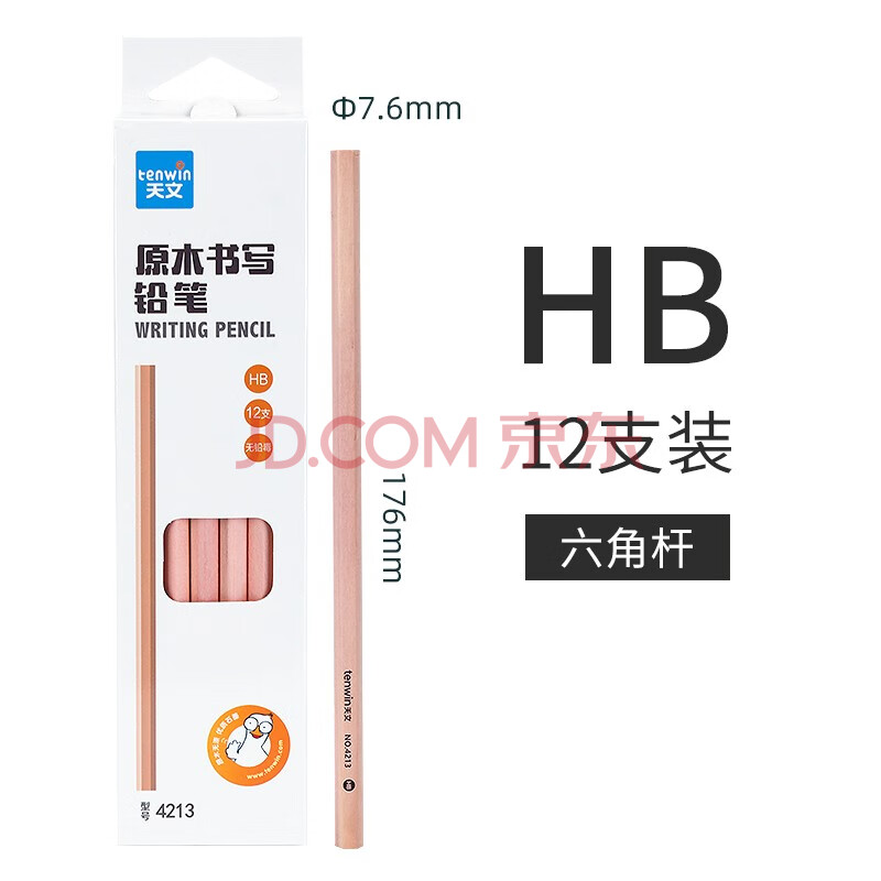 商品相册:天文(TEN-WIN)学生文具HB原木书写铅笔12支/小学生铅笔写字笔 4213第