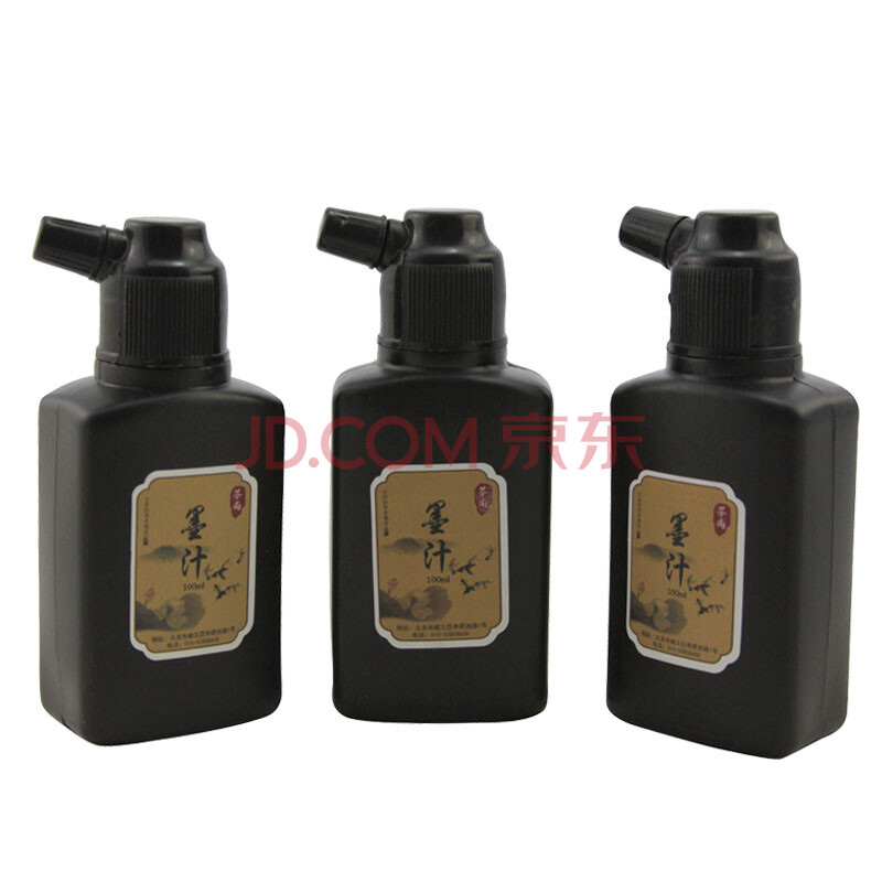 商品相册:芬尚 松烟墨汁 学生初学者毛笔书法绘画练习用黑色墨液中浓书画墨水 便携式小包装墨汁100ml*三瓶装第