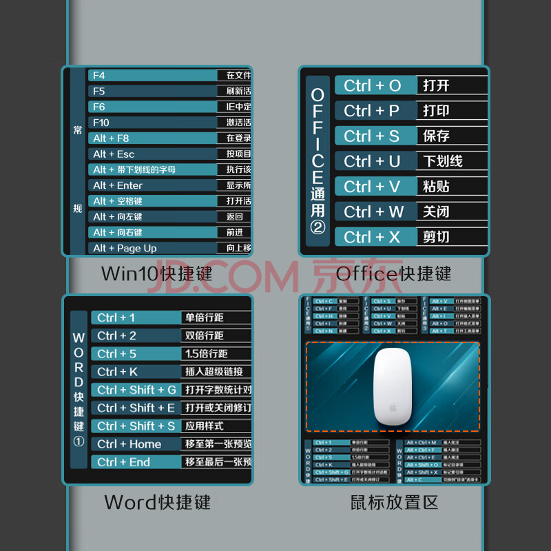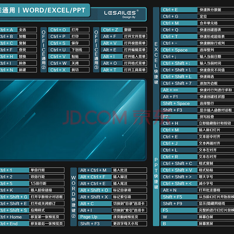 商品相册:飞遁LESAILES Office+Win10快捷键鼠标垫大号 办公电脑键盘书桌垫 蓝黑色900*400*3第