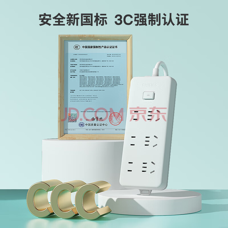 商品相册:飞利浦(PHILIPS)6位组合孔 1.8米 儿童保护门 插线板/插排/排插/接线板/拖线板第