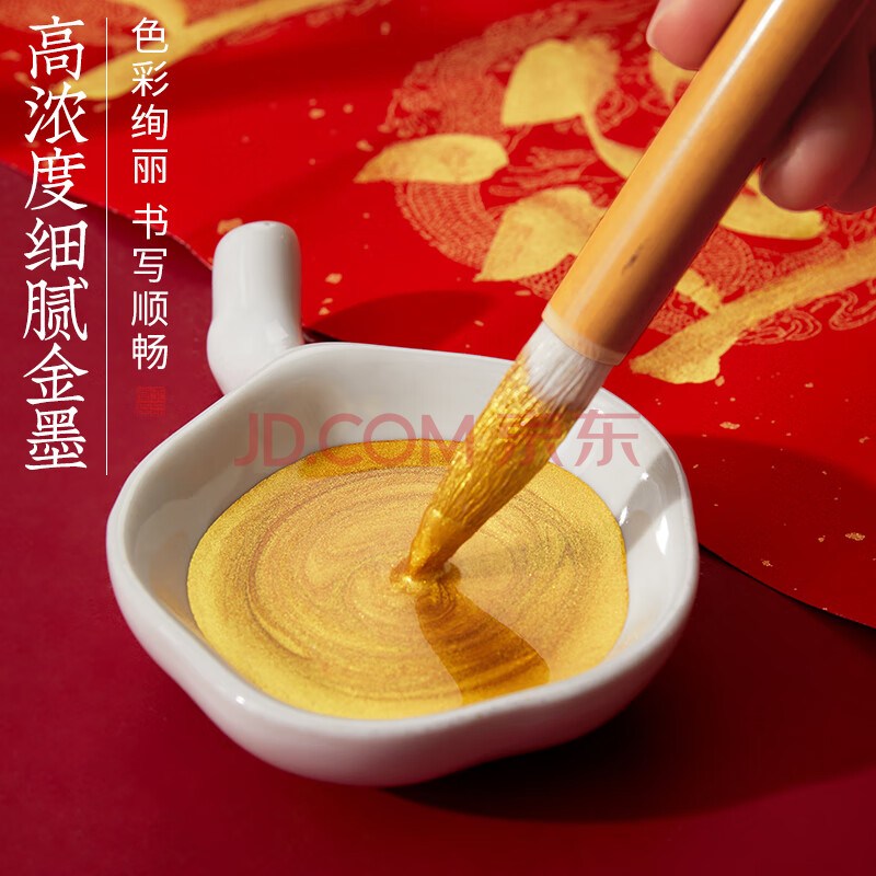 商品相册:六品堂 金色墨汁毛笔墨水学生用对联书法专用快干金墨大容量瓶装书画防水写春联练习金粉 120g升级第