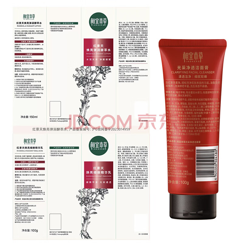 商品相册:相宜本草红景天弹润细嫩美肌套装(洁 水 乳)礼物洁面不同包装随机发货第