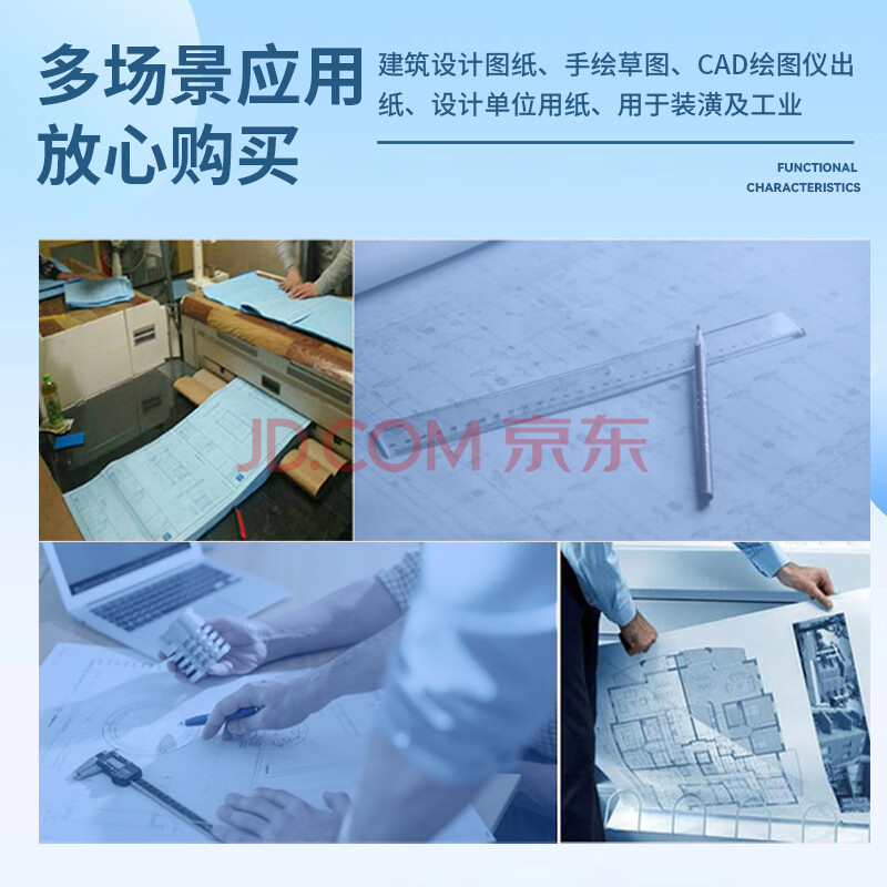 商品相册:天章 (TANGO)A0 80g 双面蓝图纸工程纸 卷式加厚复印纸 机械设计CAD制图打印纸数码纸 3寸芯2卷装(880mm*150m) 第