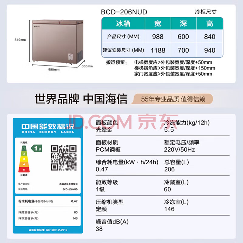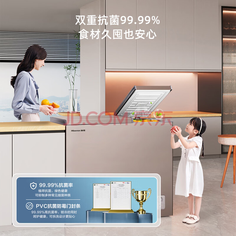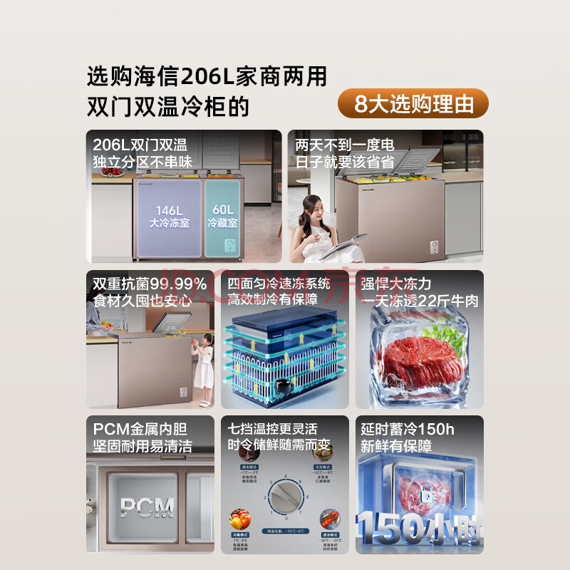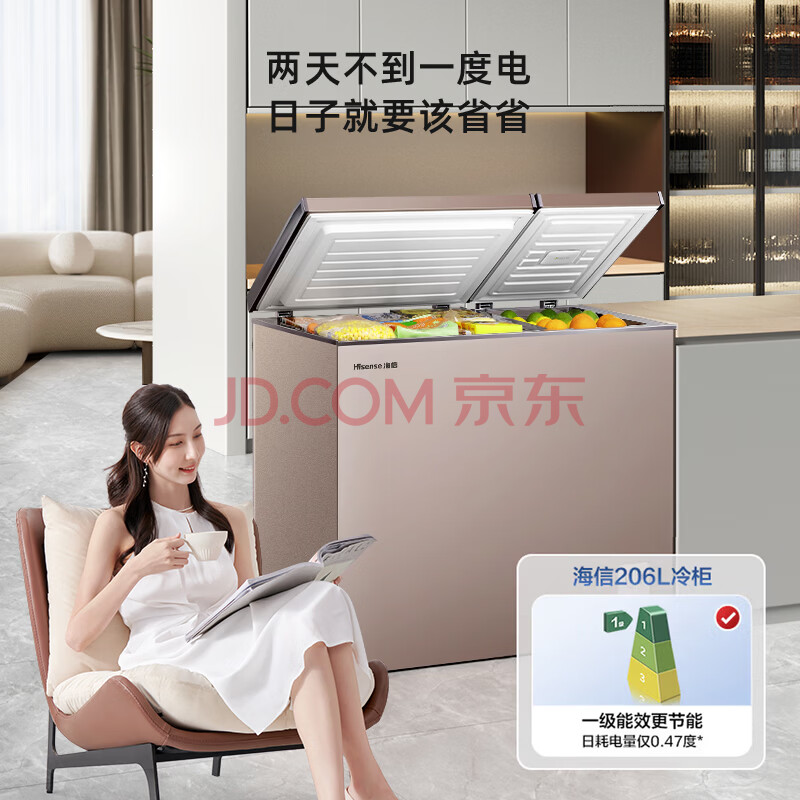 商品相册:海信(Hisense)206升双温冰柜一级能效冷藏冷冻两用独立分区速冻小型冷柜BCD-206NUD第