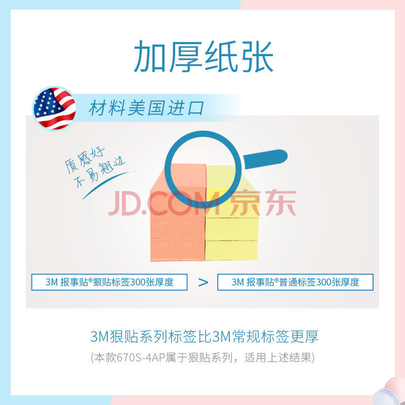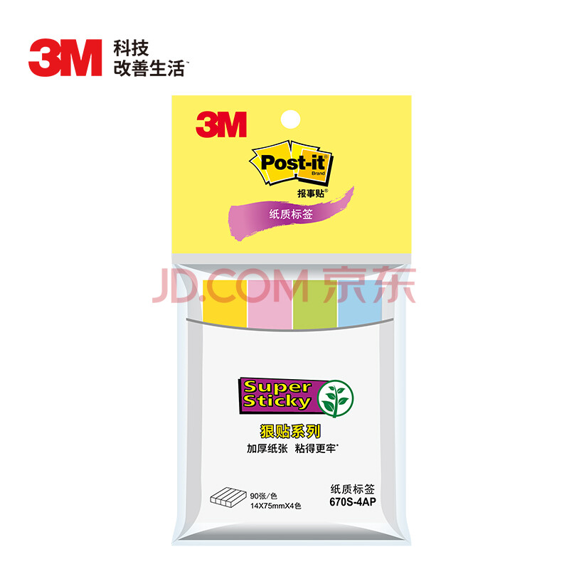 商品相册:3M 报事贴 便条纸/便利贴/便签纸/便签本 670S-4AP 狠贴系列彩色纸质标签第