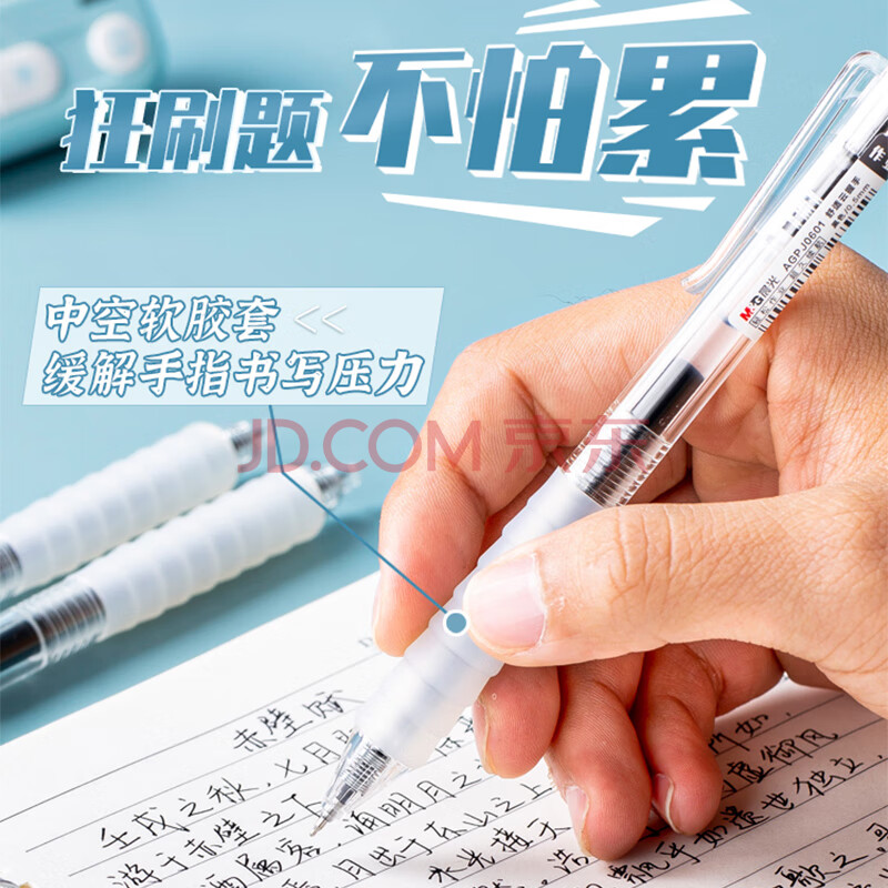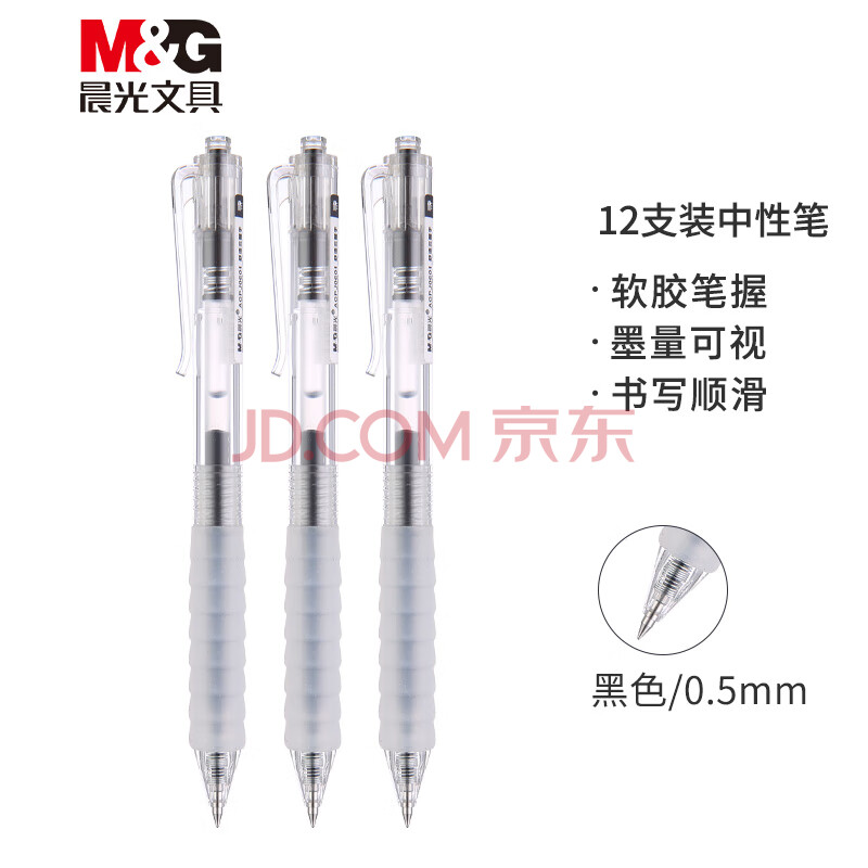 商品相册:晨光(M&G)文具【刷题笔】硅胶软握0.5mm黑色按动中性笔 子弹头签字笔 学生办公水笔12支/盒AGPJ06X7第