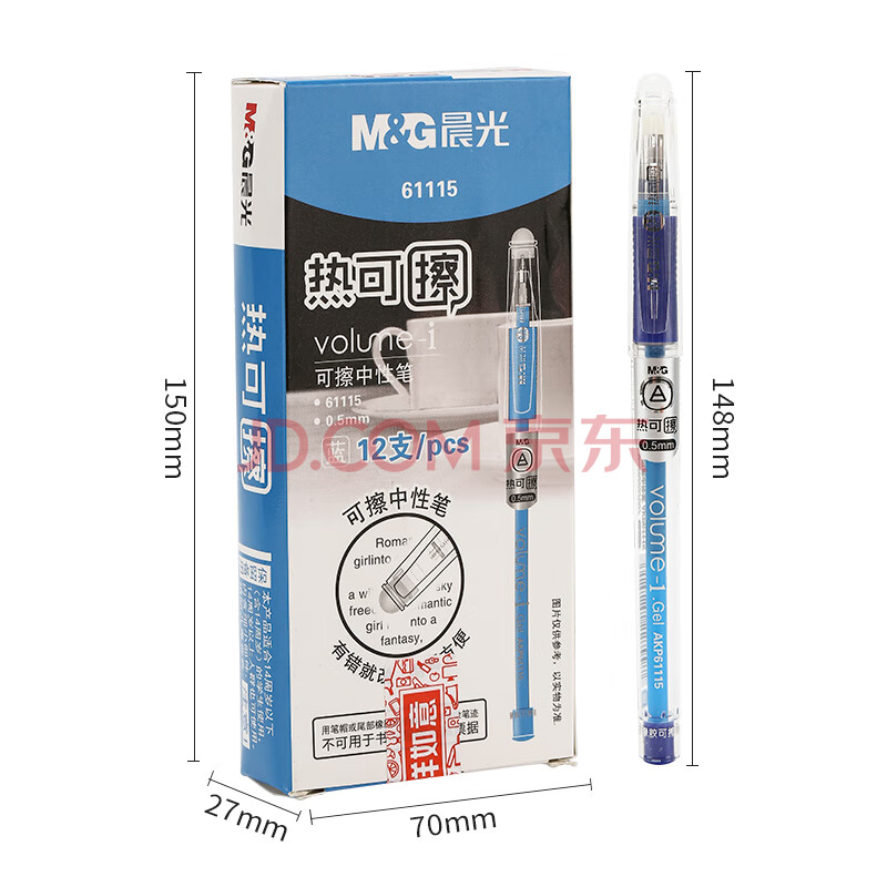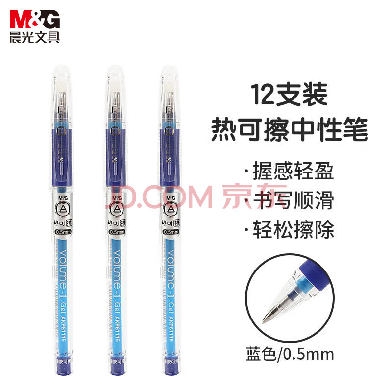 商品相册:晨光(M&G)(M&G)文具 热可擦中性笔 经典拔盖子弹头蓝色水笔0.5mm 小学生用热敏摩擦签字笔 12支/盒AKP61115B第