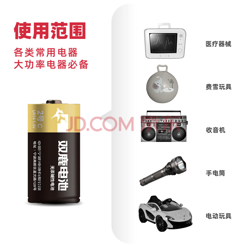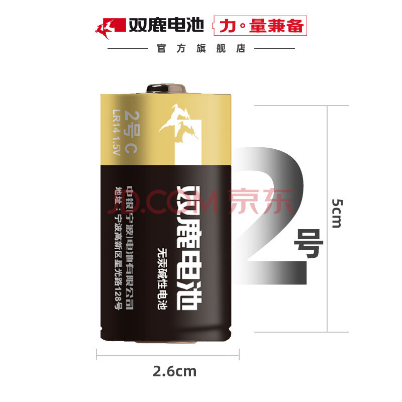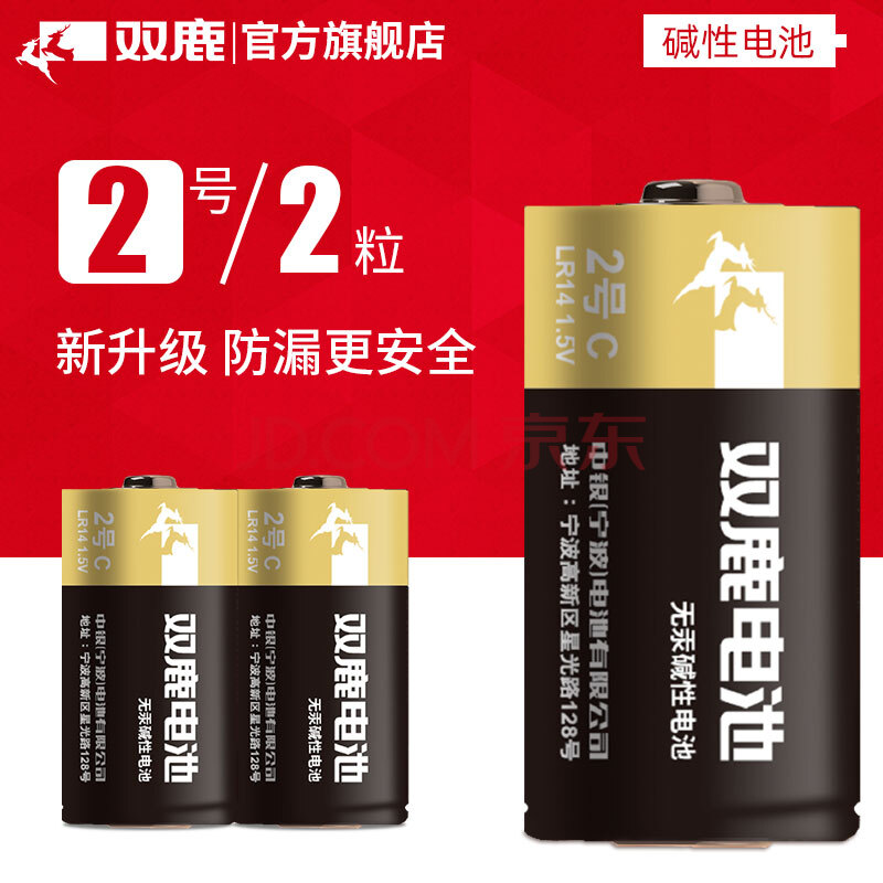 商品相册:双鹿 2号碱性干电池2粒装 无汞环保 经济实惠 适用于手电筒/录音机/收音机/遥控器 2号/中号/C型/R14P第