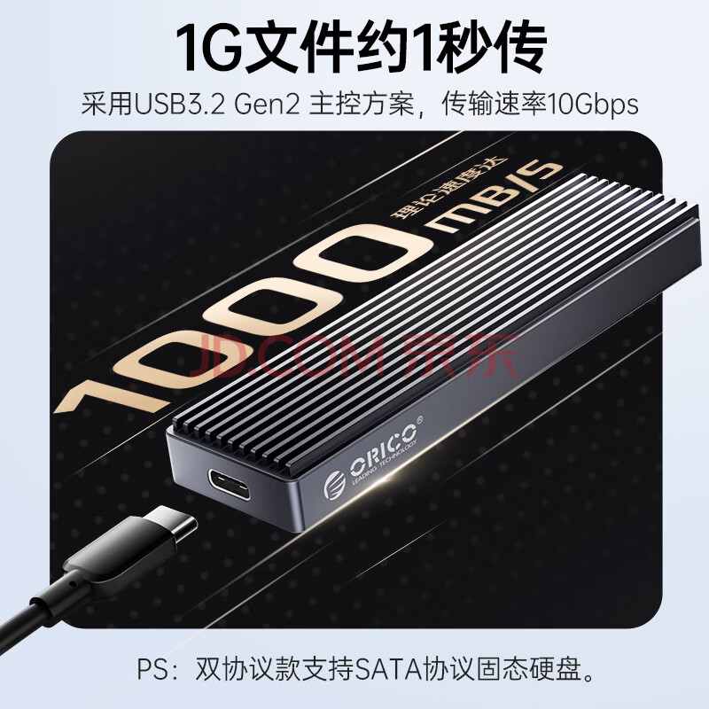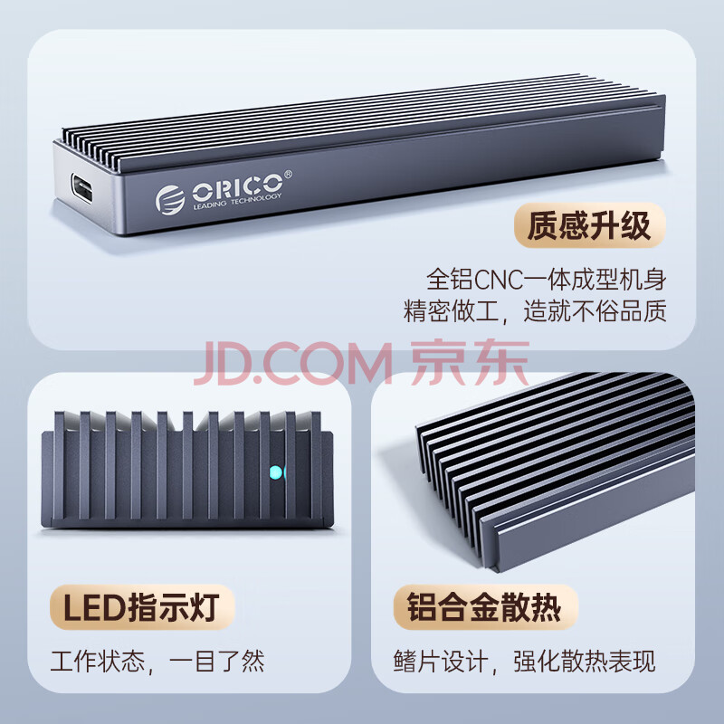 商品相册:奥睿科(ORICO)M.2 NVMe/SATA双协议固态硬盘盒10Gpbs Type-C移动硬盘盒 全铝CNC散热 适用笔记本电脑扩容 M2PJM第