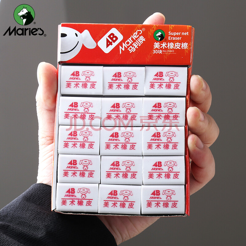 商品相册:马利(Marie's)京东JOY联名款4B橡皮盒装 学生美术素描绘图考试软橡皮擦30块装 C6443第