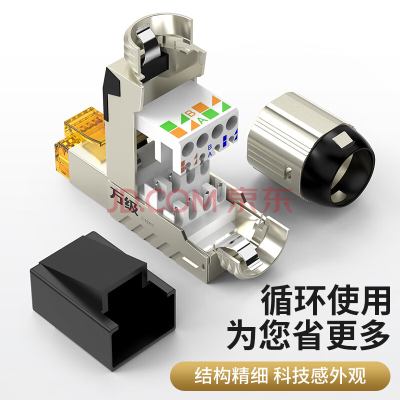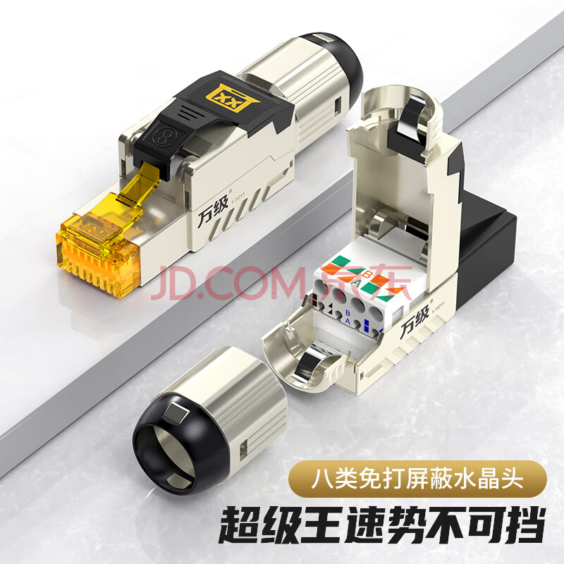 商品相册:万级(WANJEED)八类免打水晶头 工程级万兆屏蔽网线接头 Cat8类免压水晶头40Gbps高速传输WJ-15711第