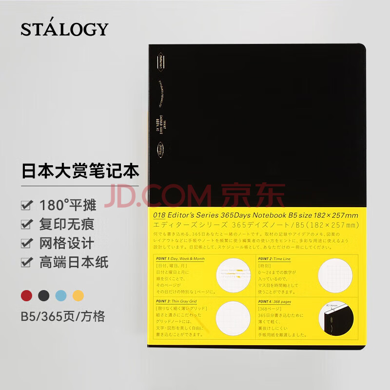 商品相册:STALOGY笔记本 日本进口本子 368页高颜值记事本 商务送礼日记本 B5全年册方格 黑色第