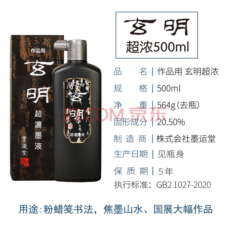 商品相册:玄明 进口墨汁 超浓墨液500ml树脂胶毛笔墨水 文房四宝书法国画作品用墨汁第1张/共8
