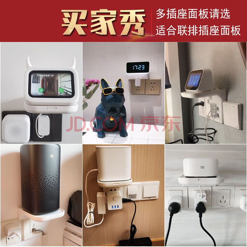 商品相册:支尔成 插座面板置物收纳架 智能音响支架摄像头支架 免打孔 可藏线小爱小度等智能音箱摄像头摆件等第