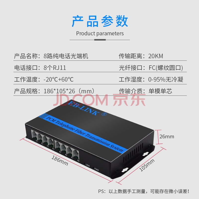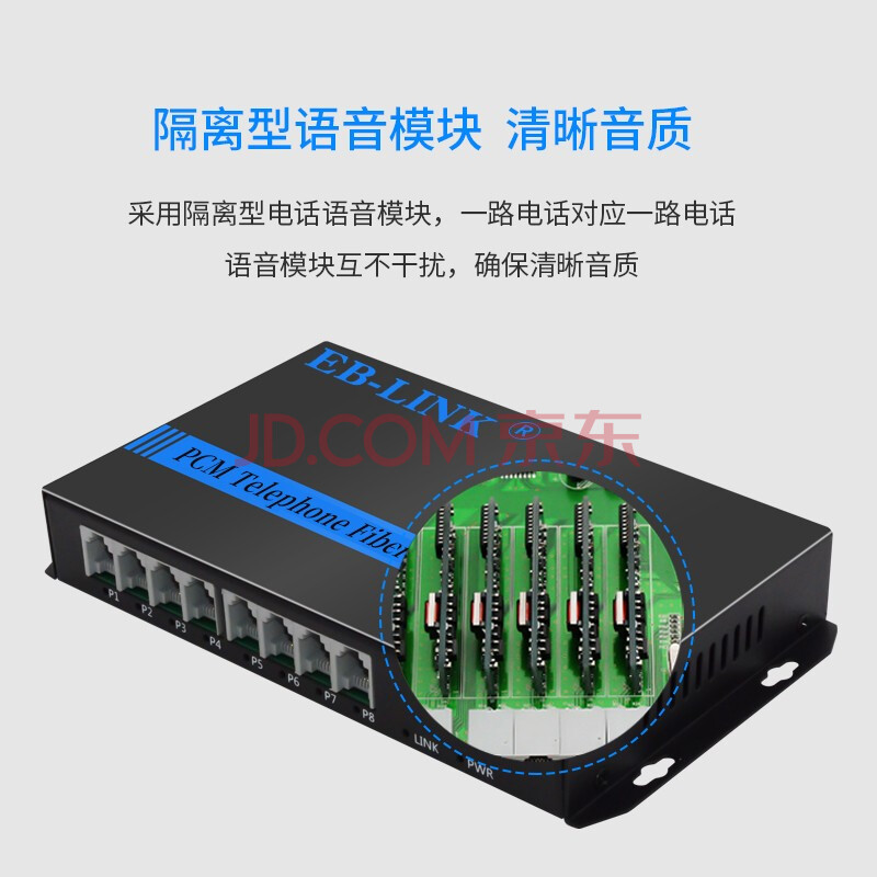 商品相册:EB-LINK 电话光端机8路电话PCM语音音频对讲电话收发器光纤传输器FC接口第