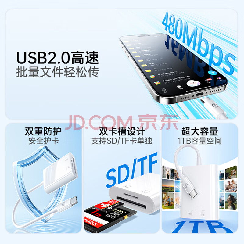 商品相册:毕亚兹 sd卡tf卡读卡器type-c多功能SD/TF卡二合一 苹果17安卓华为小米接口手机电脑ccd相机内存卡读卡器第
