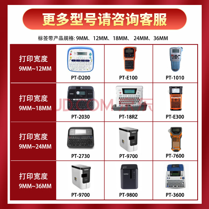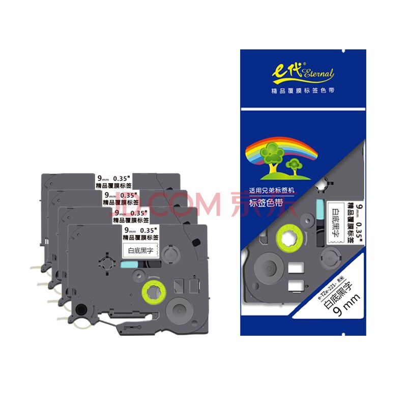 商品相册:e代标签色带9mm白底黑字TZe-221(4支装)适用brother兄弟PT-D210标签机P700打印机打印纸18Rz标签纸第