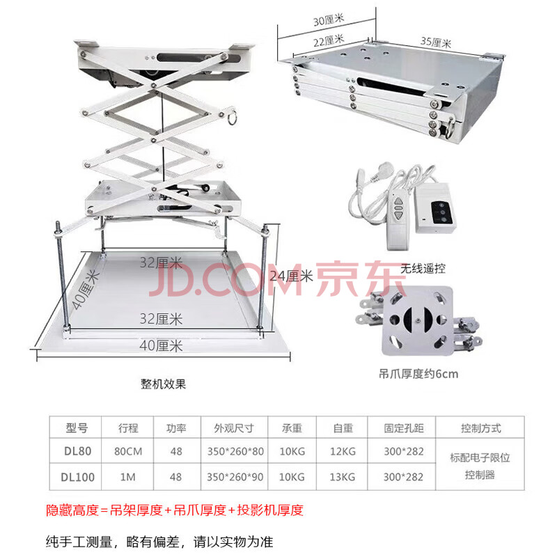 商品相册:鲸米(JINGMI)电动投影仪吊架DL100超薄家用电动遥控升降投影仪吊架行程100CM适配多品牌投影机第