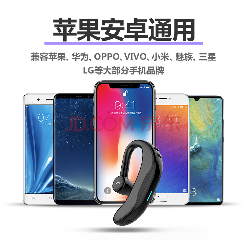 商品相册:Masentek F600无线蓝牙耳机单耳入耳挂耳式超长续航运动跑步开车载接打通电话 适用苹果华为小米手机电脑黑第