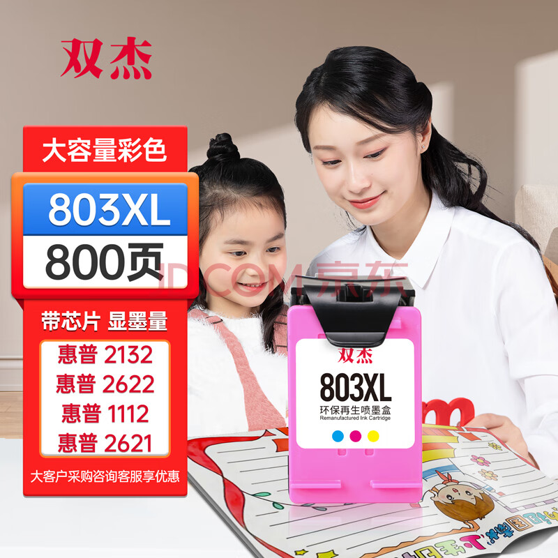 商品相册:双杰803墨盒可加墨适用惠普1112墨盒 2622 2132 2621 2131 2130 2623 2628 3830 1111 5055 2600打印机彩色墨盒第