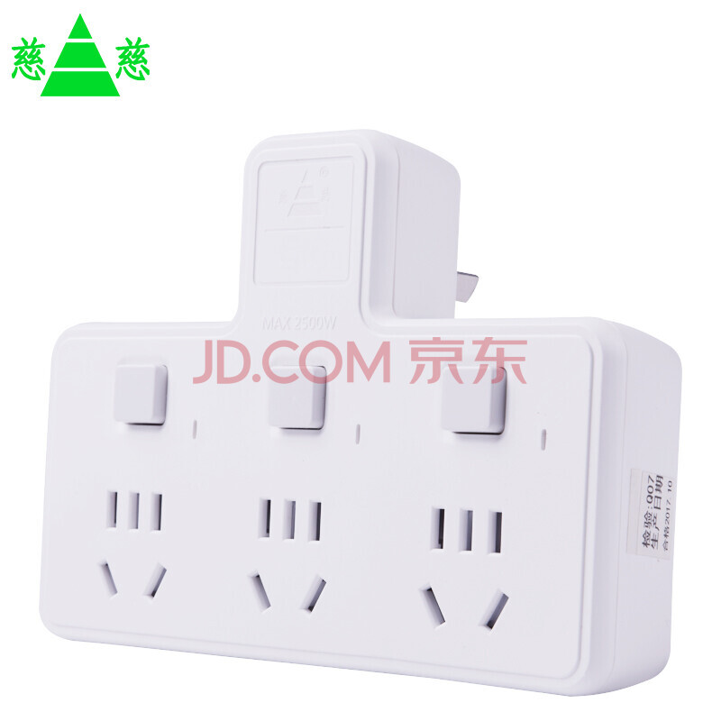 商品相册:慈慈 国标安全插座转换器/ 一转多插座/转换插头/插座扩展/一转三插座分控 一转三 H23第