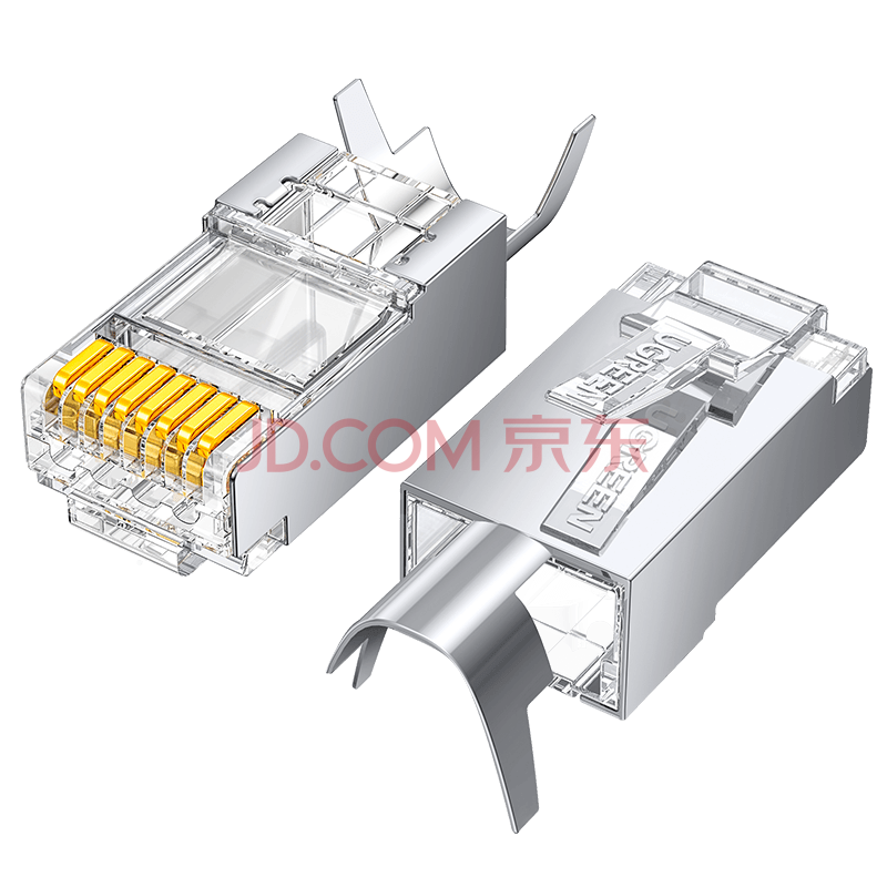 商品相册:绿联超六类网线屏蔽水晶头 超6类万兆网络接头 镀金工程级RJ45电脑网线连接器CAT6A两件式 10个70316第