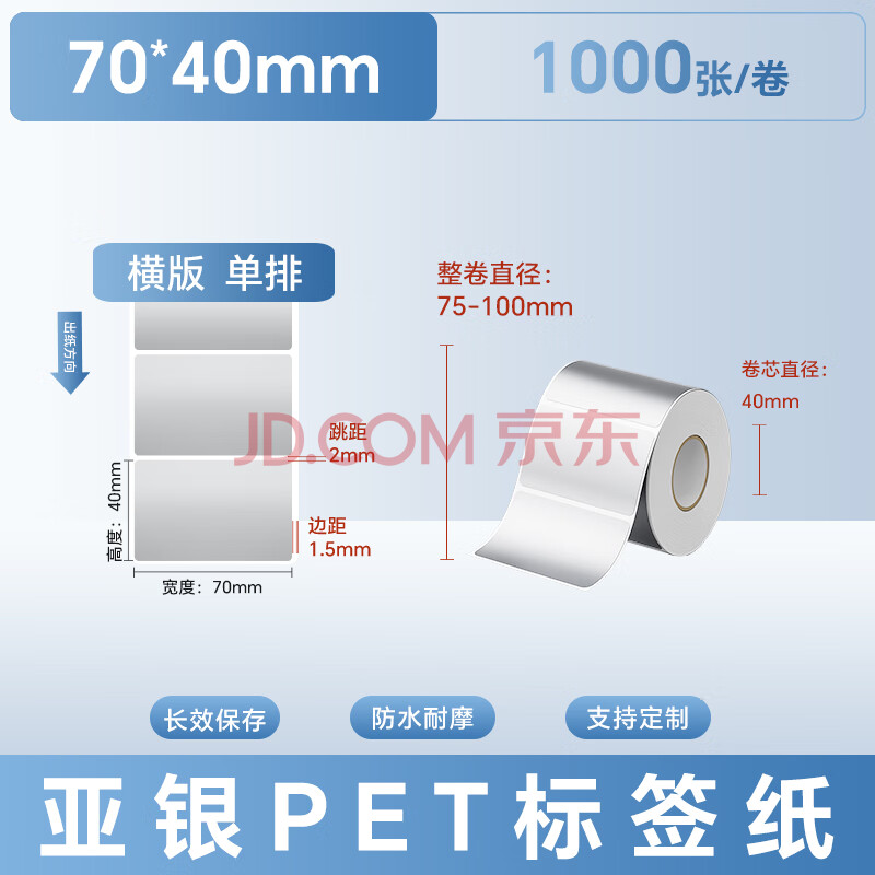 商品相册:远平条码 亚银PET不干胶条码标签纸 哑银固定资产标签 70mm*40mm*1000张 支持定制第