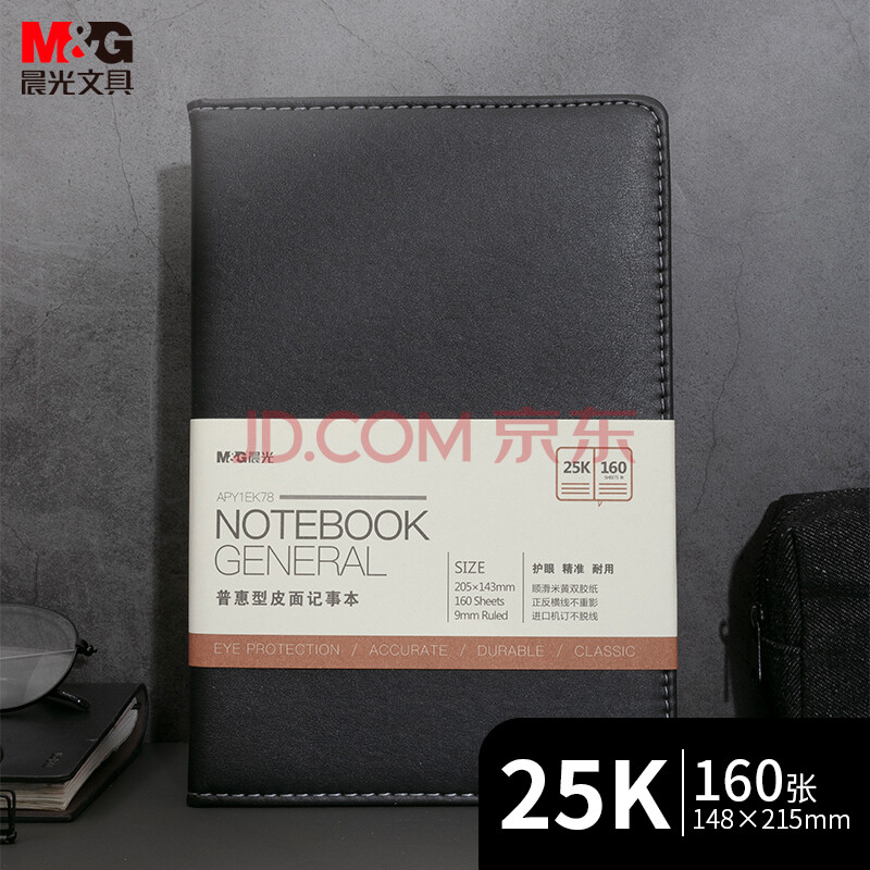 商品相册:晨光(M&G)黑色软皮革面笔记本本子开会办公用品会议记录本日记本记事本商务25K 160张单本APY1EK78第
