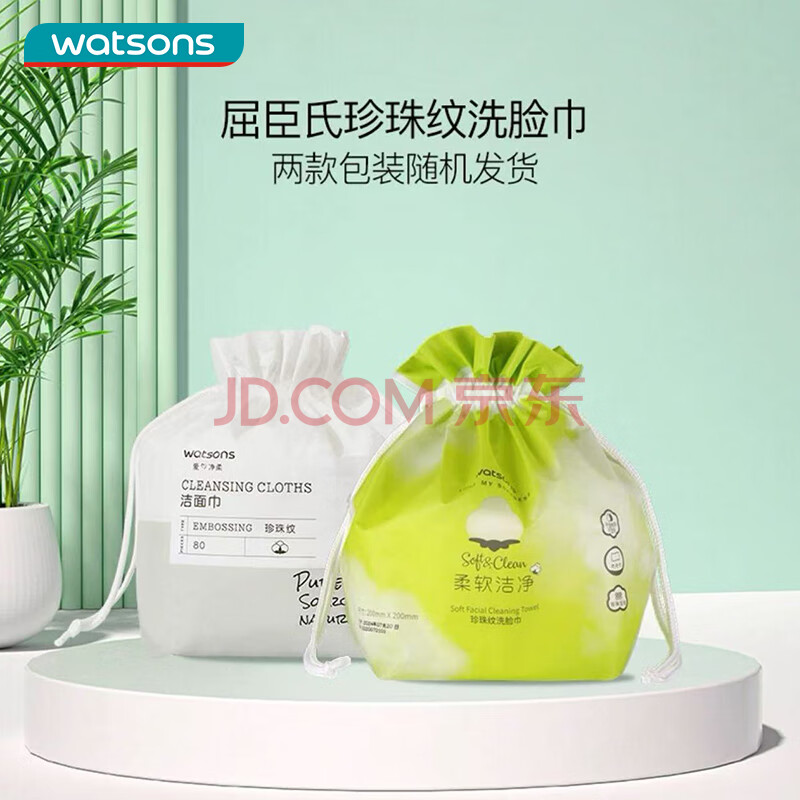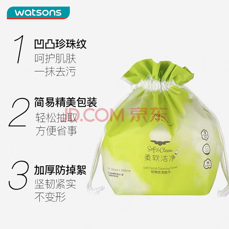 商品相册:屈臣氏 珍珠纹洗脸巾80片约300g 干湿两用加厚洁面巾第