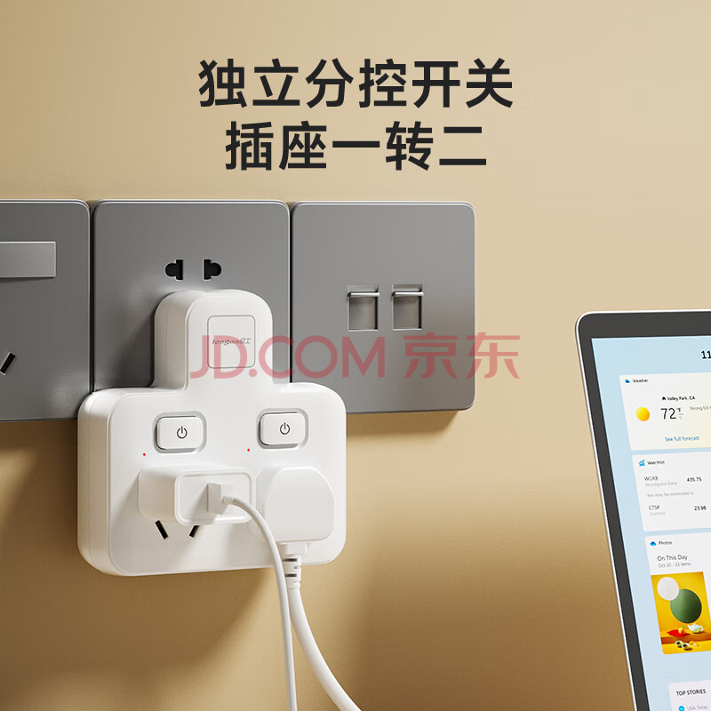 商品相册:良工(lengon)品字形转换插头/插座转换器/一转二分控/多功能一转多插座扩展/无线插板/插排扩展器 Q812第