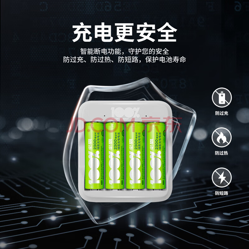 商品相册:100% 必霸(peakpower) 充电电池5号2300mAh4节配4槽USB充电套装 可充5号7号 适用于游戏柄/玩具等 5号AA第