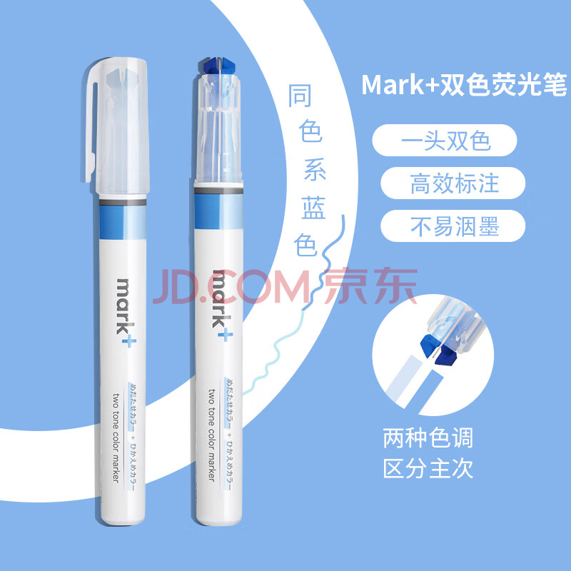 商品相册:国誉(KOKUYO)进口mark+限定双头荧光笔记号笔考试重点标记笔记号笔 蓝色1支装 PM-MT100B第
