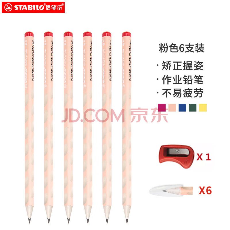 商品相册:思笔乐(STABILO)洞洞铅笔 小学生文具 HB铅笔 儿童矫姿练字 考试铅笔 324粉色6支装 儿童铅笔第