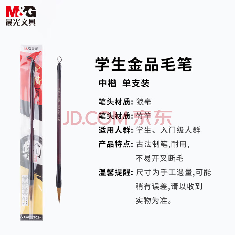 商品相册:晨光(M&G)文具中号狼毫毛笔学生书法绘画毛笔中国韵金品系列初学者 练字字帖开学礼物AWBY2802第