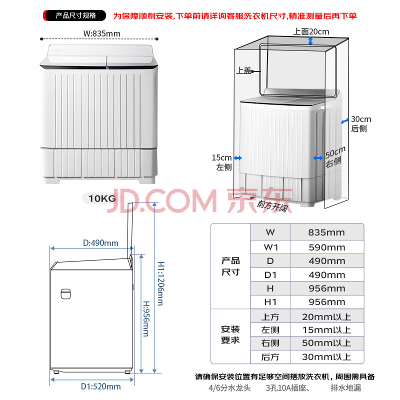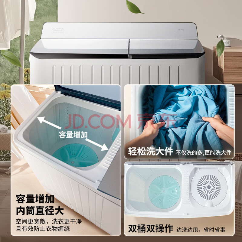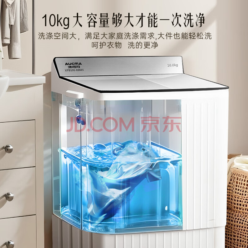 商品相册:澳柯玛(AUCMA)半自动波轮洗衣机10KG公斤 双缸大容量 双电机除毛宿舍租房家用洗涤脱水甩干机 XPB100-8988S第