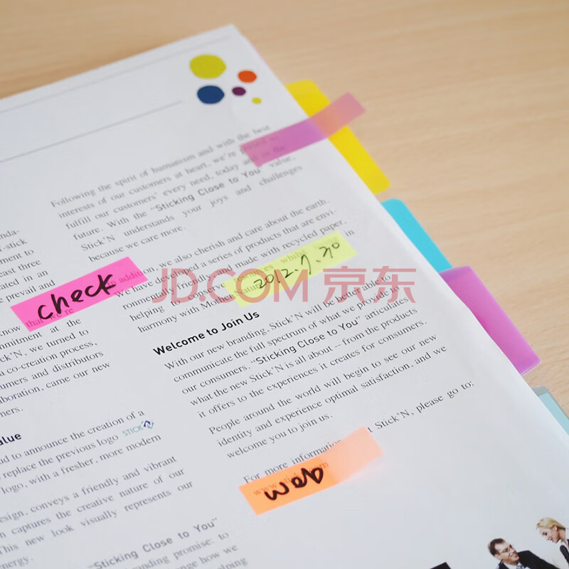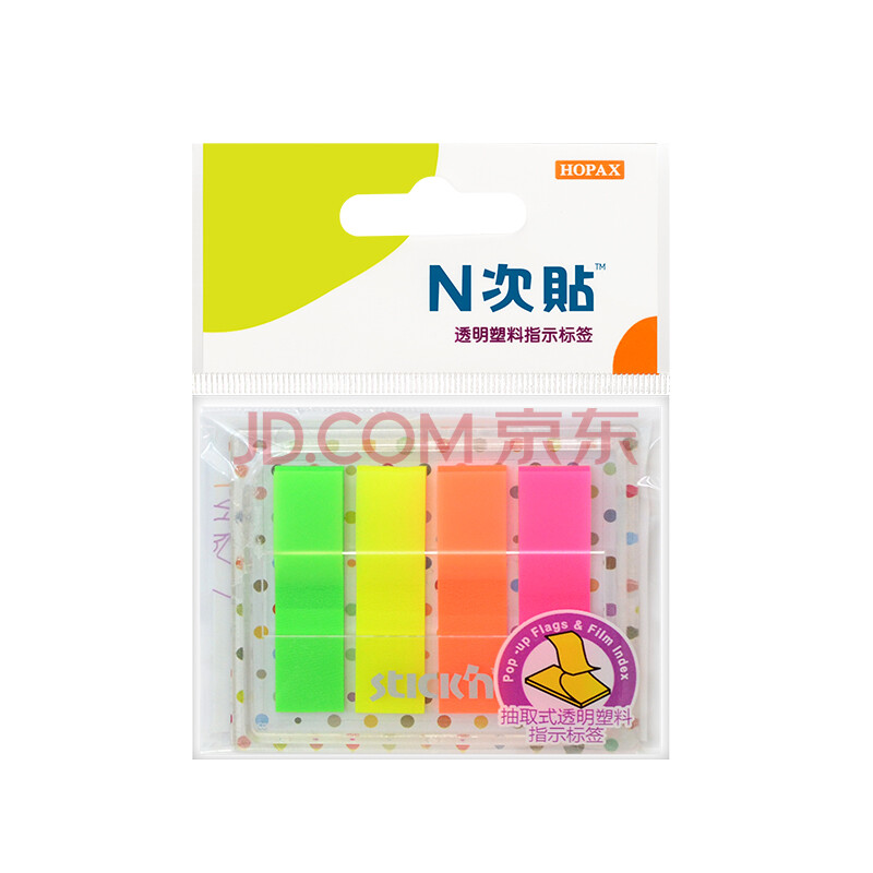 商品相册:N次贴(STICKN) 80张4色荧光膜指示标签贴45*12mm抽取式便利贴便签条记事贴34054第