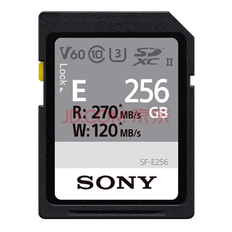 商品相册:索尼(SONY)256GB SD存储卡 SF-E256 E系列U3 C10 V60读速高达270MB/s UHS-II IP57防护等级相机内存卡第1张/共1