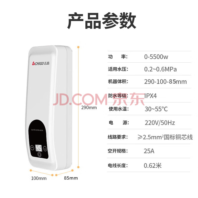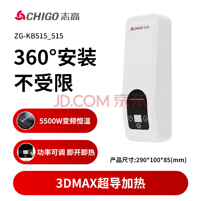 商品相册:志高(CHIGO)即热式小厨宝电热水器5500W厨房热水器小尺寸免储水电热水龙头下进水可台上台下ZG-KB515_515第