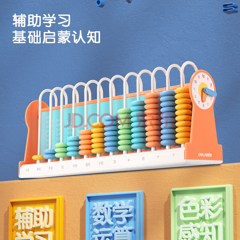 商品相册:得力(deli)12行大珠儿童计数器 益智启蒙算盘神器教具1-2年级学生加减法数学计算架认知计数文具开学礼物橙第