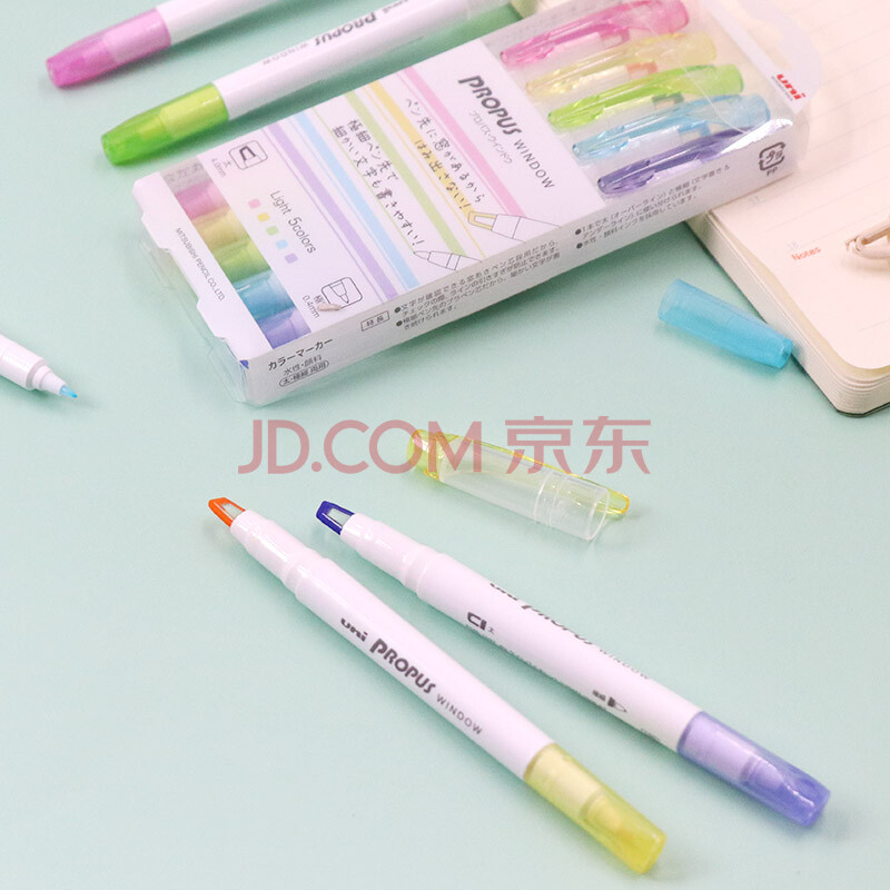 商品相册:uni三菱 双头荧光记号笔 学生作业手账绘画标记笔彩色笔 细0.4mm粗4mm PUS-103T 1支/袋 浅蓝色第