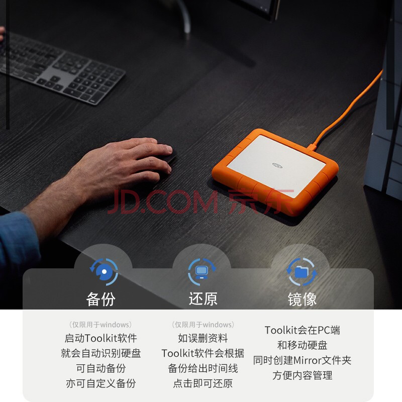 商品相册:LaCie雷孜 移动硬盘 三防加密 8TB Type-C/USB3.1 机械硬盘 双盘阵列 大容量 防摔便携 2.5英寸 外接第