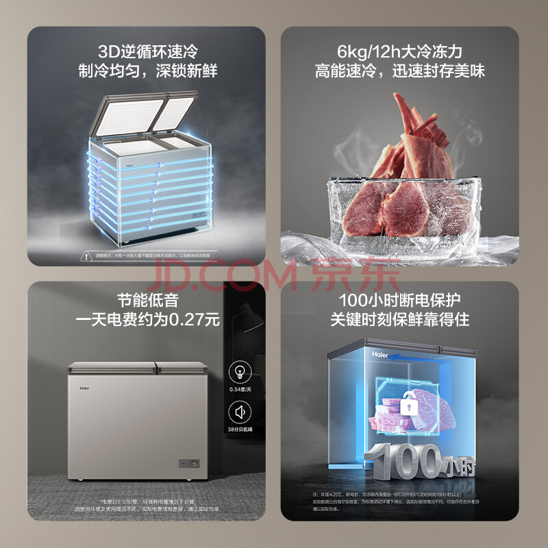 商品相册:海尔(Haier)京馨 金彩系列213升低霜双箱双温商用家用冰柜 大冷冻小冷藏卧式冰柜家用冰箱冷柜FCD-213GHXCD第