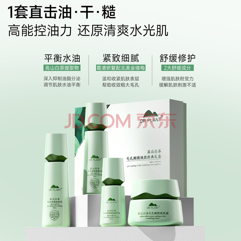 商品相册:植物医生白茶细致毛孔洁面水乳精华护肤品补水保湿礼盒第