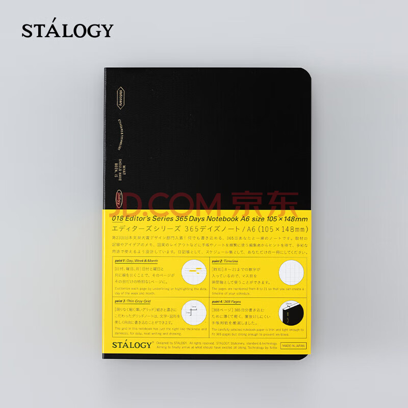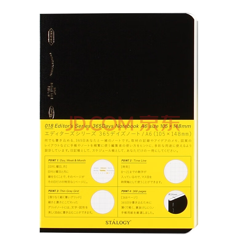 商品相册:STALOGY笔记本 日本进口本子 368页高颜值记事本 全年册学生考研日记本 2025日程本A6黑色第