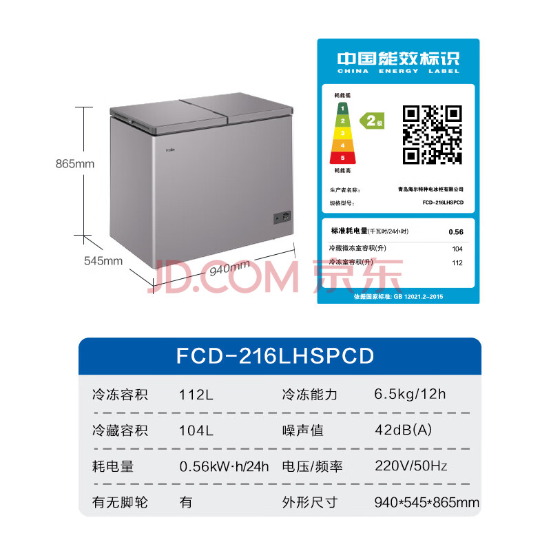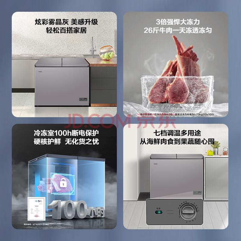 商品相册:海尔(Haier)216升双箱双温商用家用冰柜 蝶形门卧式冰柜家用商用二合一小型冰箱冷柜FCD-216LHSPCD第