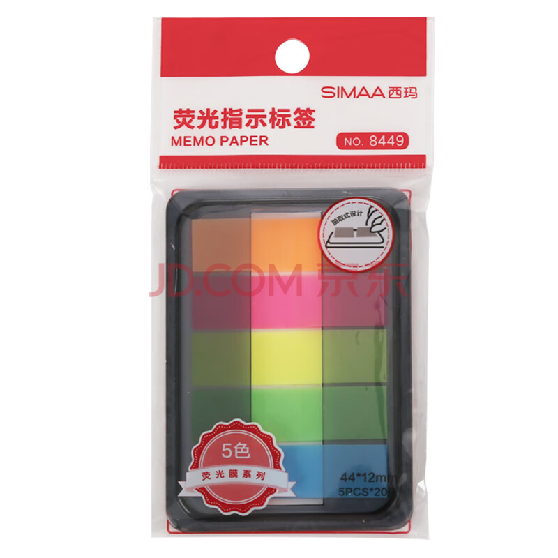 商品相册:西玛 SIMAA 100张5色荧光膜指示标签贴纸 44*12mm抽取式便利贴便签条记事贴8449第